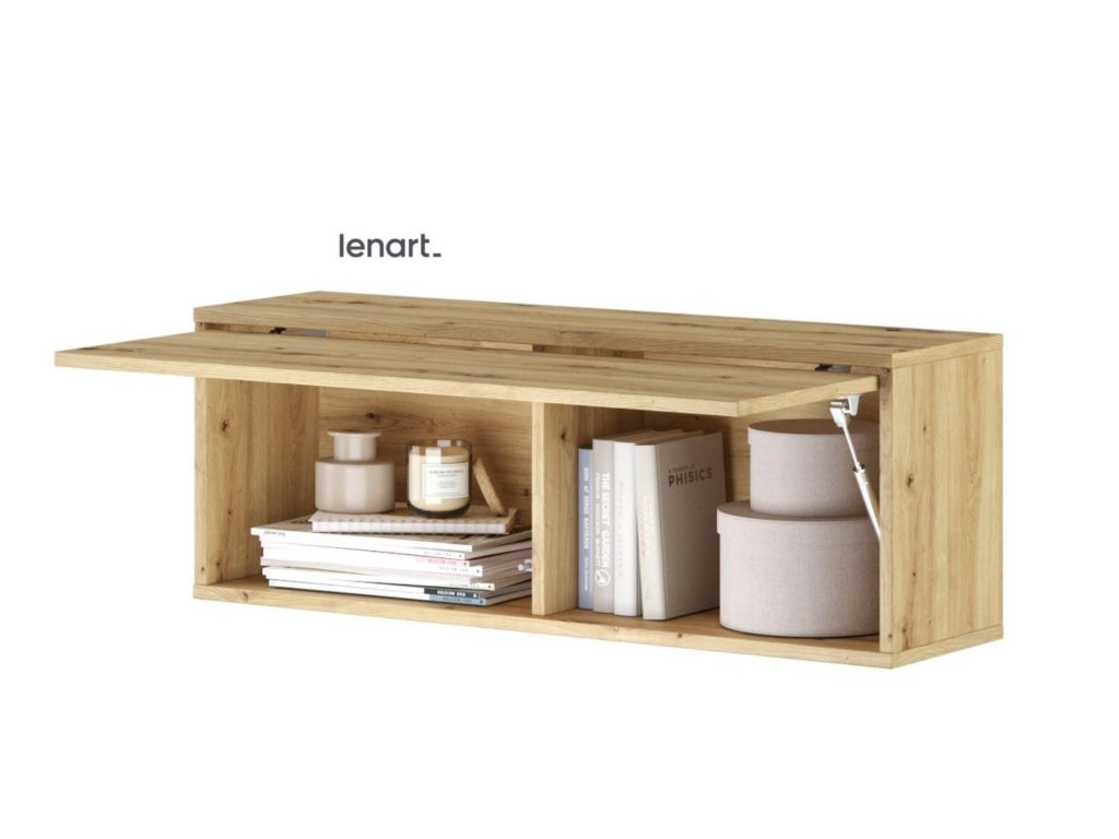 Závěsná skříňka s výklopnými dvířky dub artisan. Rozměry a vnitřní prostor viz obrázky. Nábytek je vyroben z kvalitního lamina s ABS hranou. Lamino je odolné proti poškrábání, poškození, vlhkosti a vysokým teplotám. Dodáváme v demontovaném stavu.Doplňkové parametry
