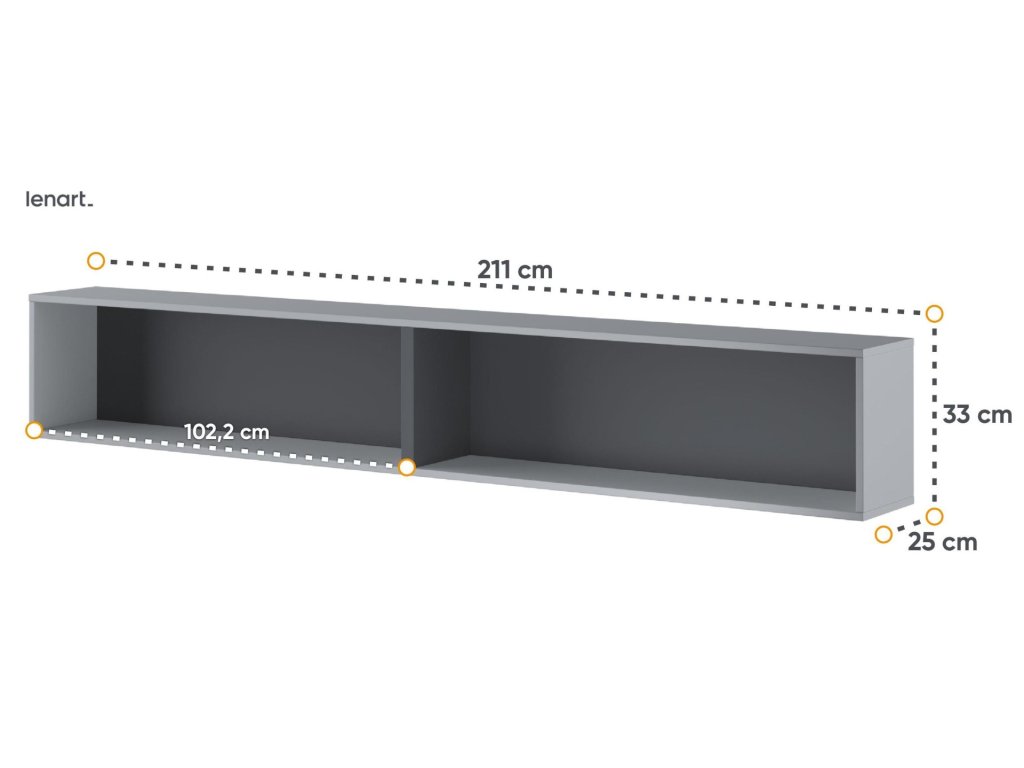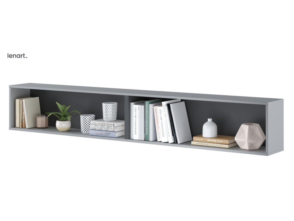 Závěsná police barva šedá/grafit. Rozměry viz obrázek. Nábytek je vyroben z kvalitního lamina s ABS hranou. Lamino je odolné proti poškrábání, poškození, vlhkosti a vysokým teplotám. Dodáváme v demontovaném stavu.Buďte první, kdo napíše příspěvek k této položce.