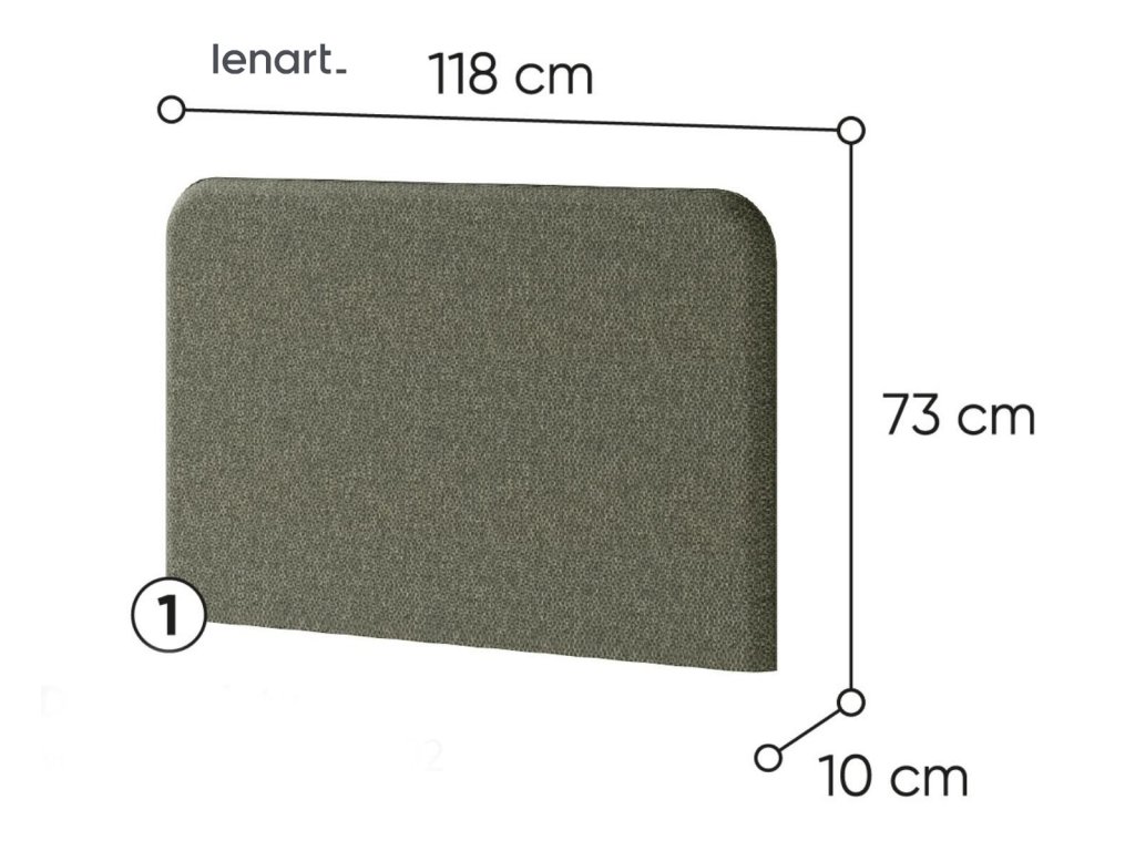 Komfortní polstrovaný záhlavník k vysoké posteli široké 120 cm Bed Concept pro vetší pohodlí. Rozměry viz obrázek. Vyroben je z pevné polyuretanové pěny (PUR) potažený látkou 100% PES LUKKA 38 v barvě šedozelená. V nabídce máme i jiné barevné provedení.