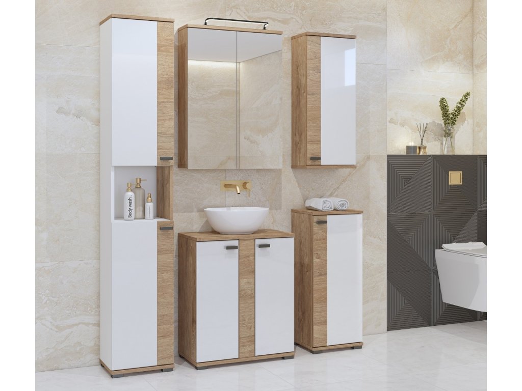 BENDY 09 koupelnová skříňka 1D, bílá / dub zlatý
