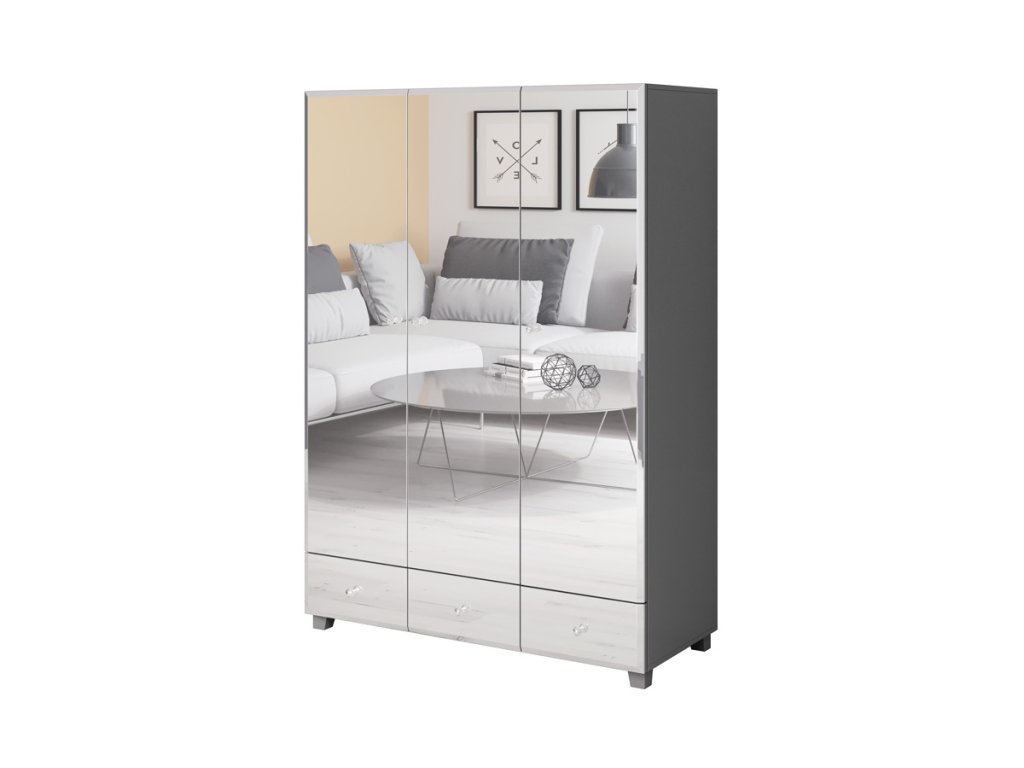 Skříň je třídveřová. Ve spodní části se nacházejí tři praktické zásuvky.