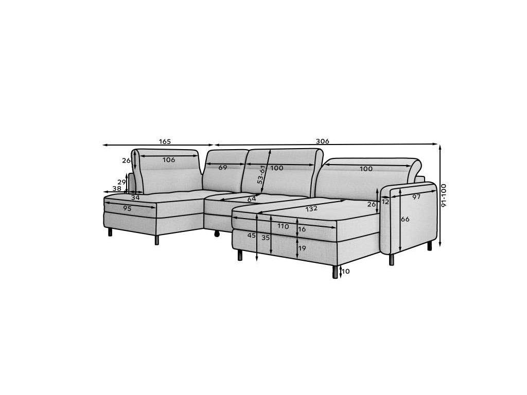 Rozměry (ŠxVxH): 309 x 100 x 165. Výška sedáku 45 cm.