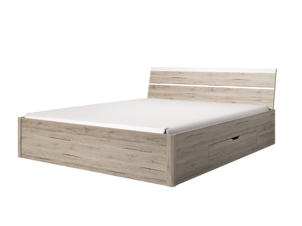 Manželská postel BETKA je součástí stylového ložnicového sektoru BETKA. I díky ní si vytvoříte vysněnou ložnici podle vašich představ. Postel je vyrobena z kvalitních LTD desek, které jsou nenáročné na údržbu. Barevné provedení je v kontrastu barev: Dub San Remo, bílá. Manželská postel má praktický úložný prostor, v podobě šuplíků pod postelí. Je v jednoduchém provedení. Spací plocha: 180 x 200 cm. Matrace a rošt nejsou součástí postele. Můžete si je u nás dokoupit o velikosti: 2 x 90 cm, resp. 180 x 200 cm. Rozměry (š,v,h): 186 x 92 x 218 cm. Ložnicový nábytek BETKA zaujme milovníky praktických řešení ve spojení s elegantním a stylovým designem. Vynikající promyšlená kombinace funkčnosti s trendy nábytku je pro sektor BETKA samozřejmostí. V nabídce také jiné barevné provedení. Dodáváme v demontovaném stavu.Doplňkové parametry
