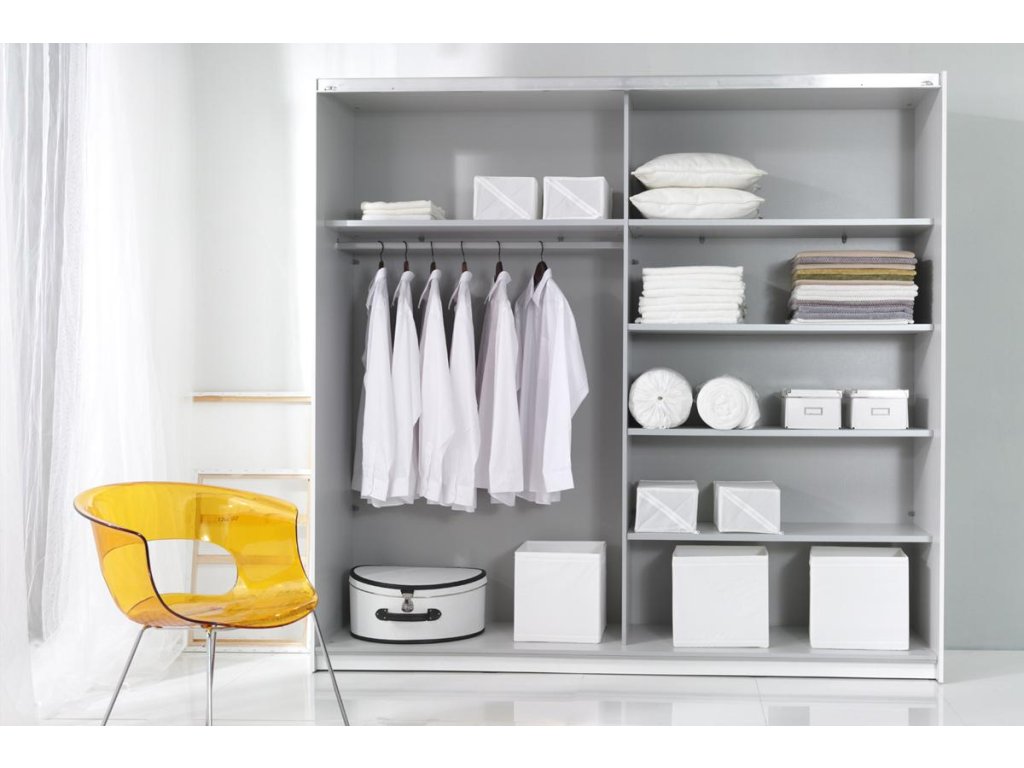 Šatní skříň BETKA nabízí spoustu úložného prostoru. Ve spojení s jejím moderním designem se stane stylovým prvkem, který zvýrazní prostor vašeho interiéru. Posuvné dveře umožňují maximální využití prostoru, zrcadlová plocha zvýrazní celý prvek a místnost opticky zvětší. desky. Její údržba není náročná, což ocení každý majitel. Vnitřní prostor je rozdělen na 2 části. Jedna část je vybavena 1 pevnou konstrukční poličkou a tyčí na ramínka, druhá část disponuje 1 pevnou a třemi nastavitelnými policemi. Korpus nábytku je v barevném provedení černá. Přední dveře jsou v kombinaci černé barvy a velkého zrcadla. Můžete je doplnit o funkci tichého zavírání, které není součástí (nutno doobjednat).