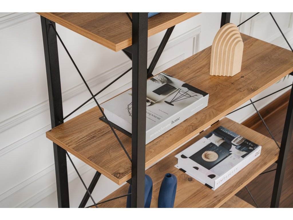 Kombinace barvy ořechu a černé dodává této knihovně stylový a industriální vzhled. Bez námahy se hodí do jakéhokoli stylu interiéru, od moderního až po rustikální, a dodá vašemu prostoru nádech charakteru. Ať už ji umístíte do obývacího pokoje, ložnice nebo kanceláře, tato knihovna se jistě stane ústředním bodem vašeho interiéru.