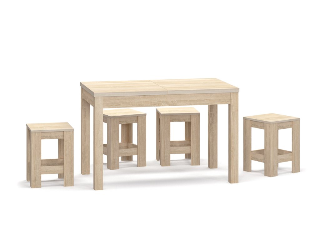 Jídelní stůl je obdélníkového tvaru bez možnosti rozkladu.
