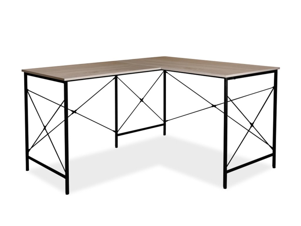 Výjimečný pracovní stůl BORIS B182 v industriálním stylu zaujme na první pohled. Díky kovové konstrukci je zaručena stabilita stolu. Ta vytváří zajímavý tvar, který zvýrazňuje celkové provedení nábytku. Stůl je vyroben v rohovém provedení a poskytuje velký pracovní prostor. Pracovní část stolu je vyrobena z kvalitních MDF desek v provedení dub/bílá. Konstrukce je kovová, v barevném provedení černá. Tento materiál se snadno udržuje, což ocení každý majitel. Maximální nosnost je 40 kg. Rozměry (š/v/h): 120/140 x 76 x 60 cm. Dodáváme v demontu.Doplňkové parametry