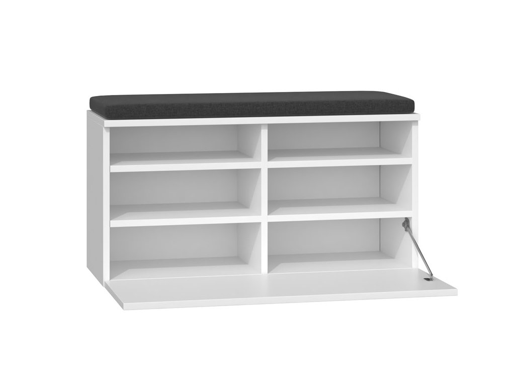 - Botník ELK je vybaven výklopnými přihrádkami, které poskytují efektivní a přehledné uskladnění obuvi a jsou doplněny o pohodlný polštářek na sedení pro maximální pohodlí při obouvání a vyzouvání.