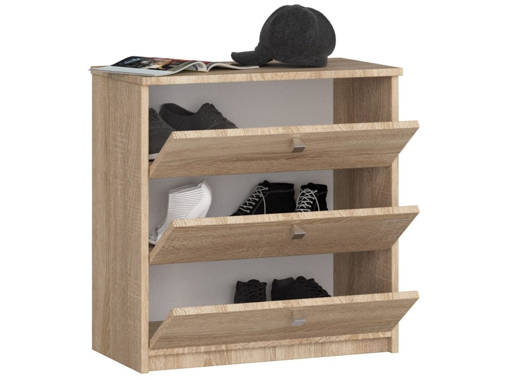 - Výklopné přihrádky: Tři praktické výklopné přihrádky nabízejí dostatek místa pro vaše oblíbené boty a zároveň usnadňují jejich přístup.