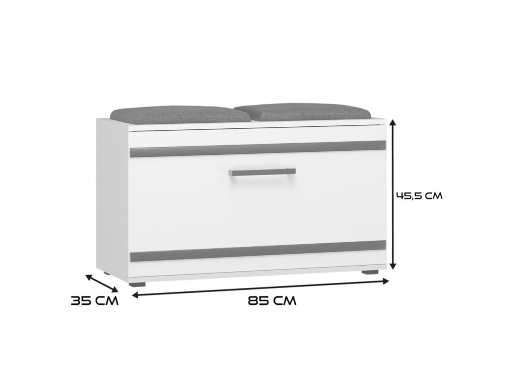 Botník PEORIA je vyroben z kvalitního materiálu LTD a doplněn látkovým polštářkem, což zajistí jeho odolnost a snadnou údržbu. S kompaktními rozměry 45 x 85 x 35 cm poskytuje dostatek prostoru pro uložení obuvi, aniž by zabíral mnoho místa.