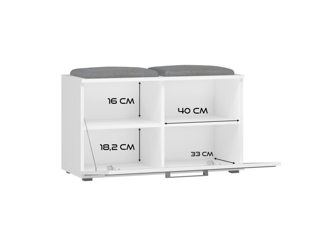 - Výklopné přihrádky botníku PEORIA poskytují efektivní a přehledné uložení obuvi, a jsou doplněny o pohodlný polštářek na sedení, který zvyšuje komfort při obouvání a vyzouvání.