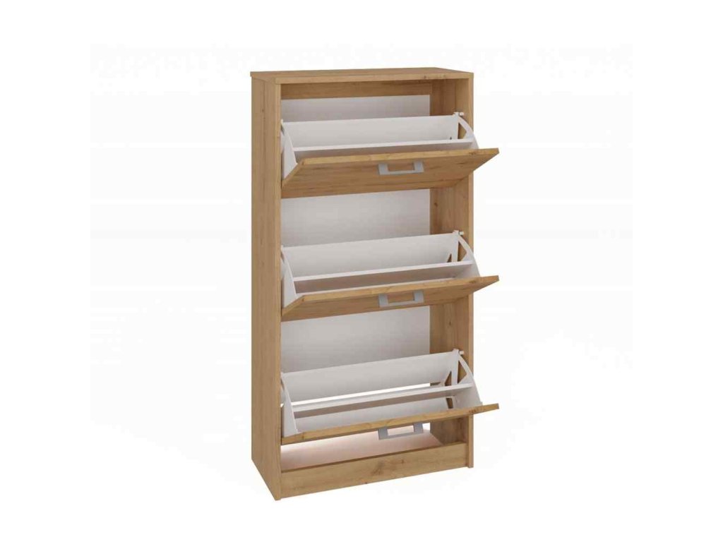 - Botník je vybaven výklopnými přihrádkami, které poskytují dostatek místa pro efektivní a přehledné uskladnění vaší obuvi.