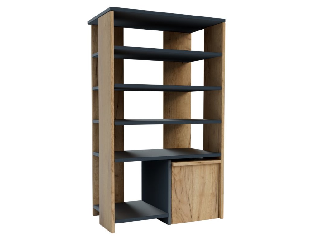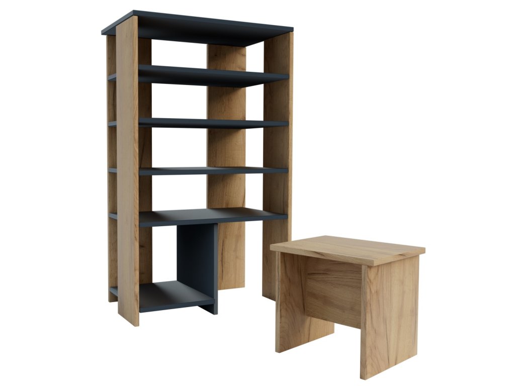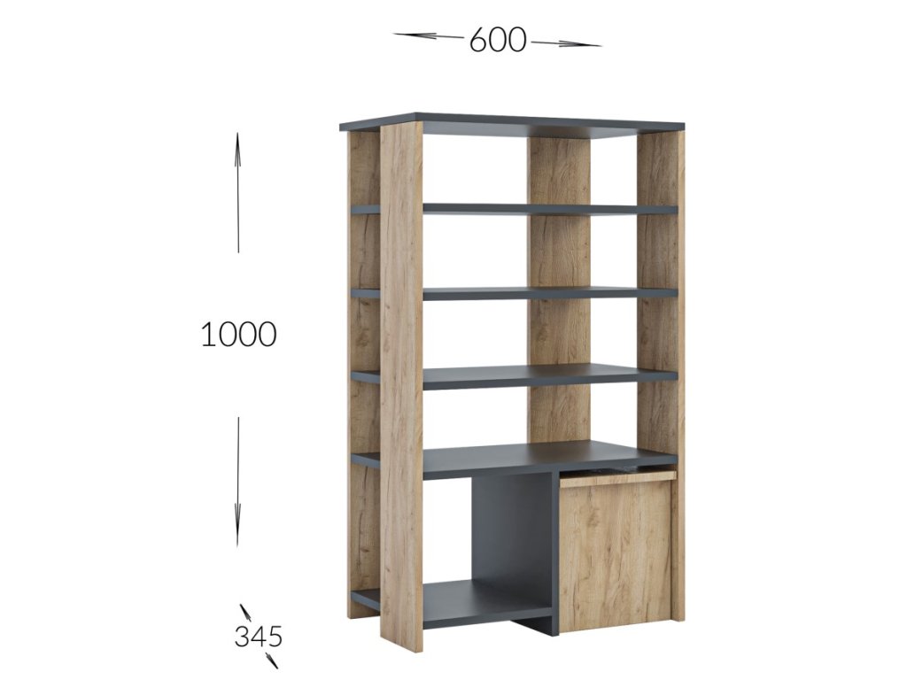 Barevné provedení: antracit (poličky)/ dub kraft zlatý (konstrukce).