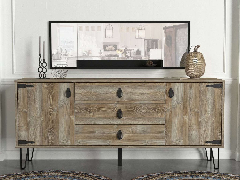 Komoda BRAVA je vyrobena z kvalitního LTD materiálu, kovu a skla s tloušťkou 18 mm, což zajišťuje její pevnost a dlouhou životnost. Elegantní kombinace světle hnědé a černé barvy dodává komodě moderní a sofistikovaný vzhled, který se hodí do jakéhokoliv interiéru. Komoda je vybavena čtyřmi dvířky a třemi zásuvkami, které poskytují dostatek úložného prostoru pro vaše potřeby.