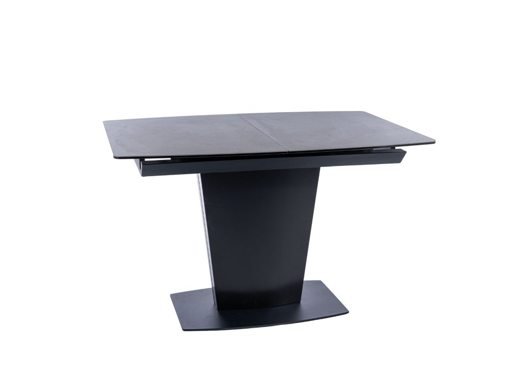 Vrchní deska je vyrobena z tvrzeného skla. Je v černém barevném provedení s efektem mramoru. Konstrukce stolu je kombinací kovu a MDF.