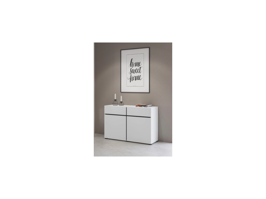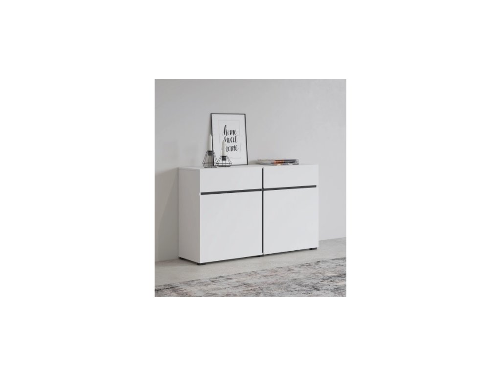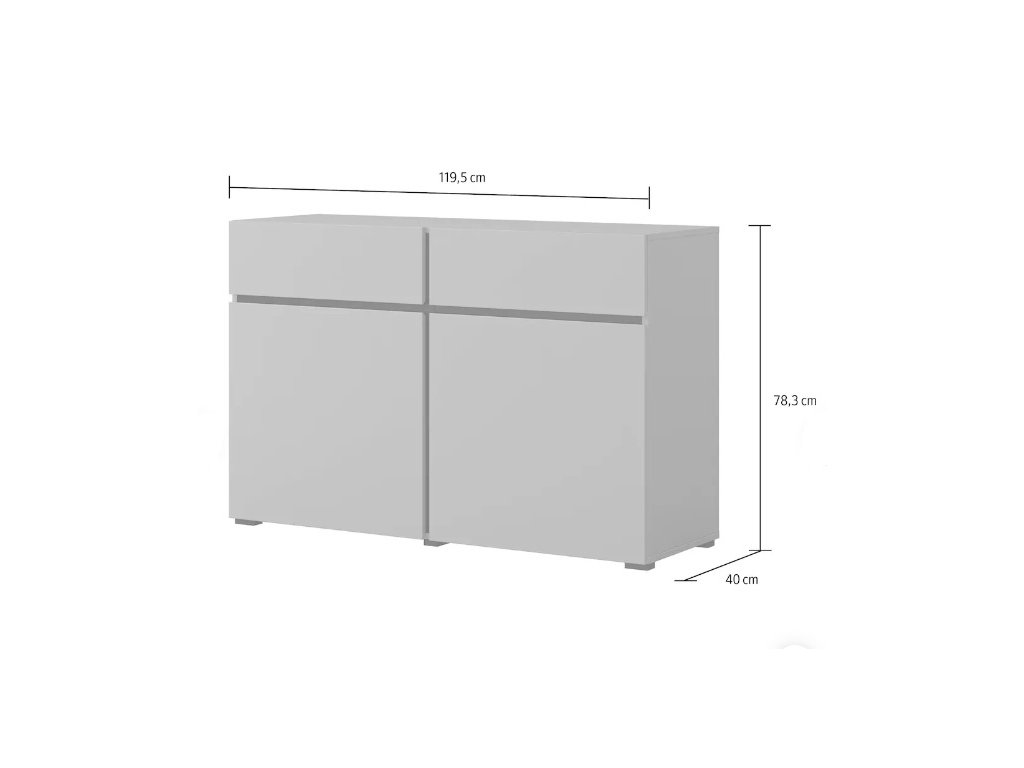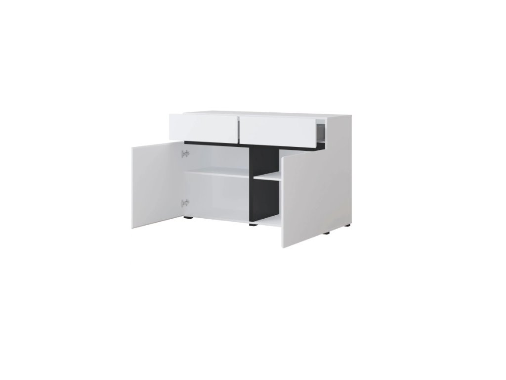Tato moderní komoda je vyrobena z kvalitních LTD desek, které se snadno udržují. Je dvoudveřová, disponuje také dvěma zásuvkami.
