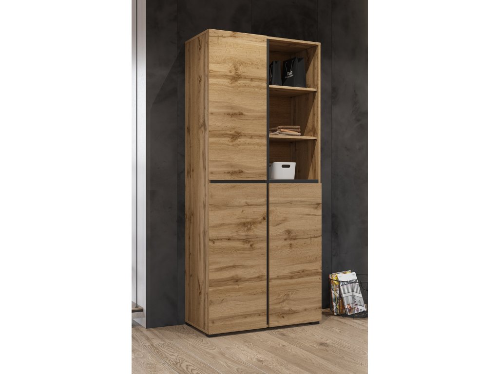 BRENDON skříň do chodby 3D, dub Wotan / černá
