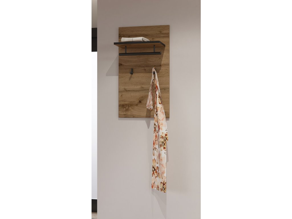 BRENDON věšákový panel, dub Wotan / černá