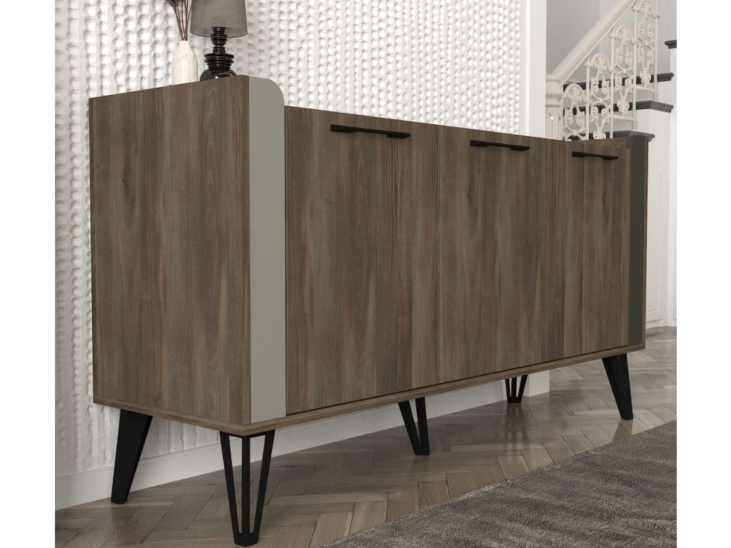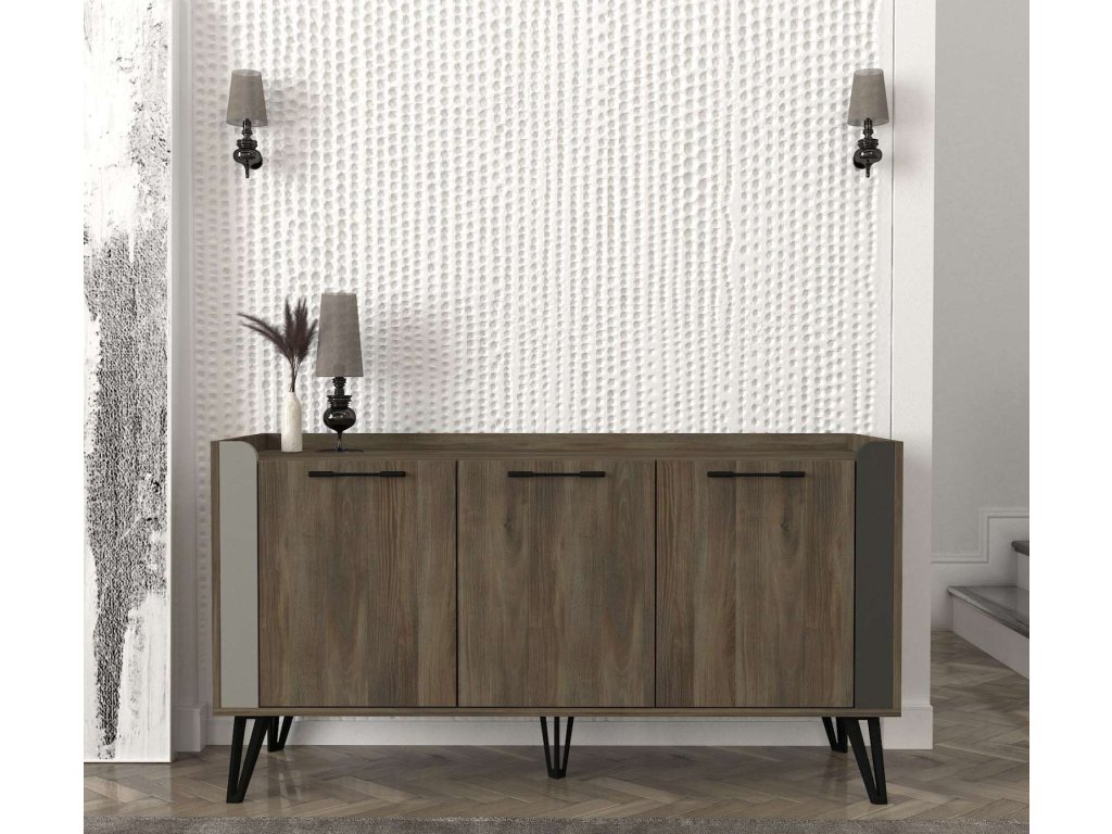 Komoda BRUGES je vyrobena z kvalitního LTD materiálu s tloušťkou 18 mm, což zajišťuje její pevnost a dlouhou životnost. Elegantní kombinace béžové, hnědé a antracitové barvy dodává komodě moderní a sofistikovaný vzhled, který se hodí do jakéhokoliv interiéru. Komoda je vybavena třemi dvířky, které poskytují dostatek úložného prostoru pro vaše potřeby.