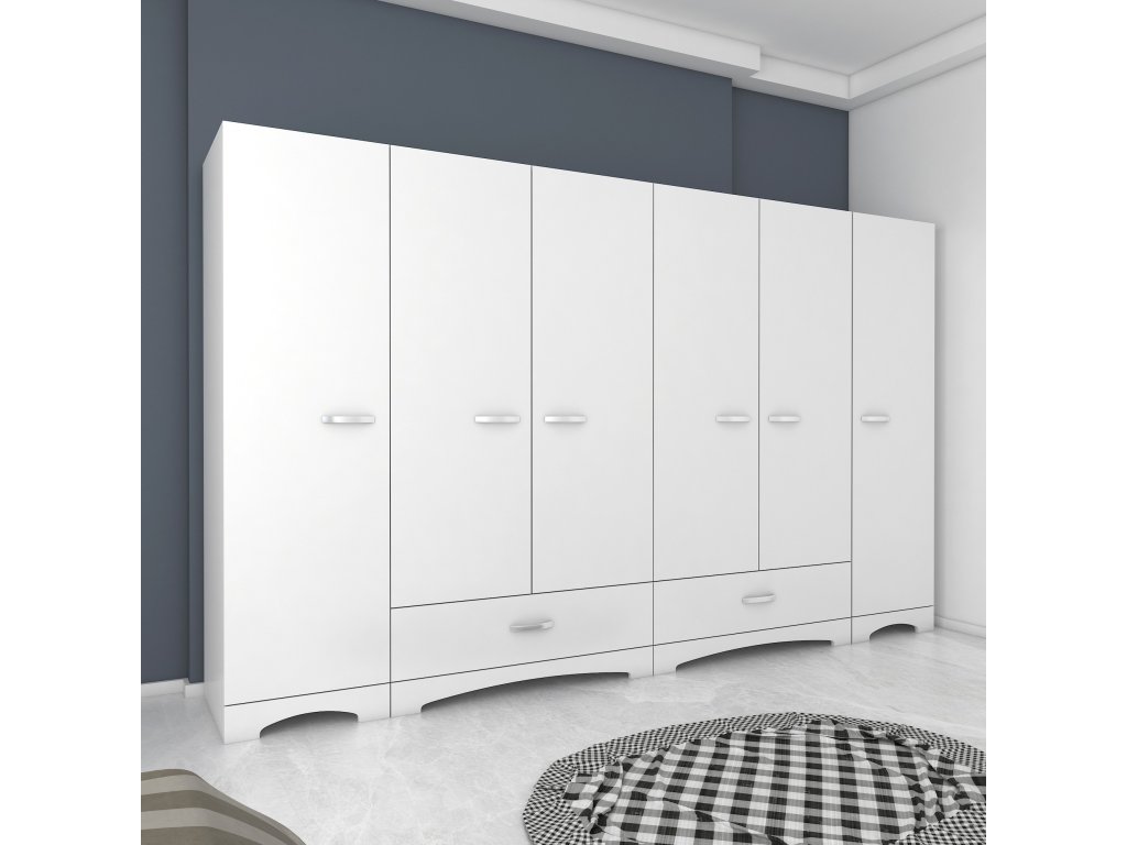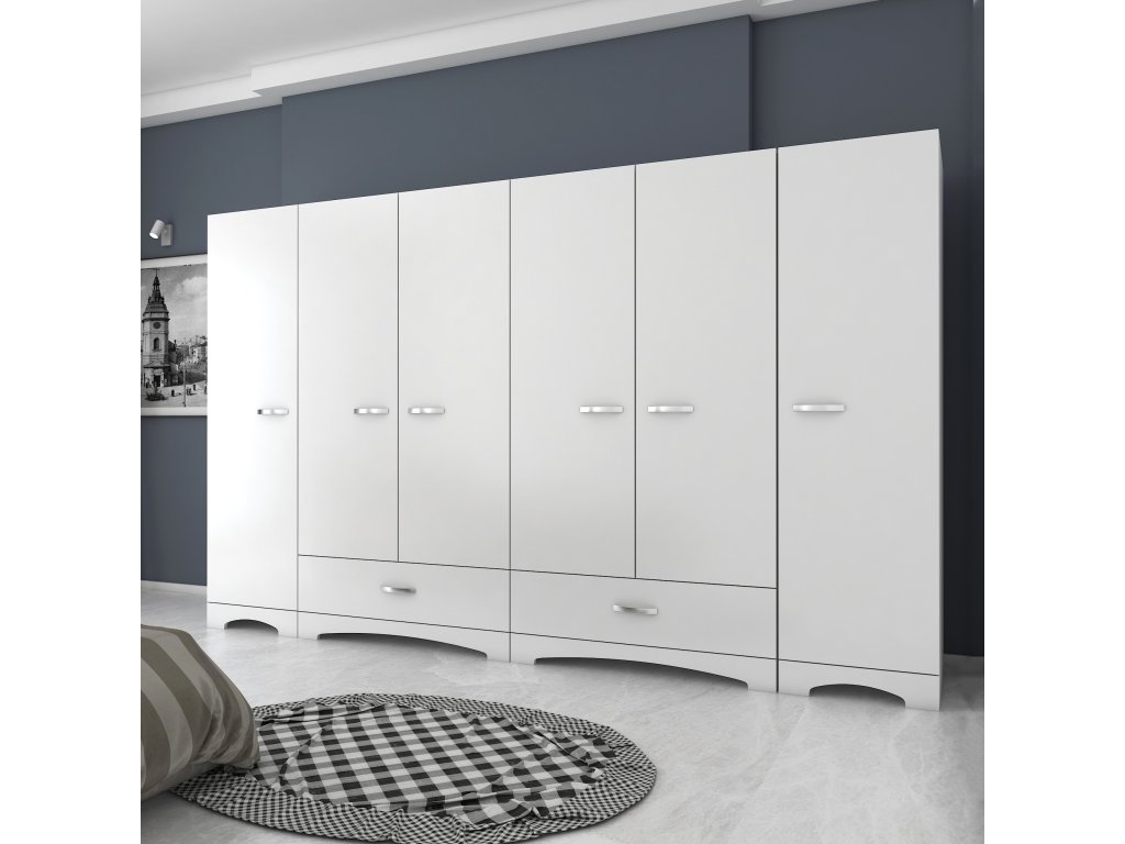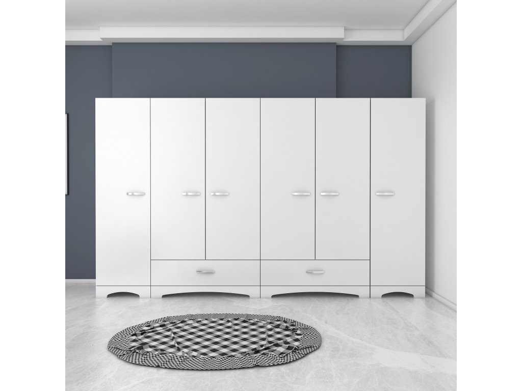 Šatní skříň BUTTON je dokonalou volbou pro moderní ložnici. Díky širokému designu, čistě bílému provedení a skandinávskému stylu přináší prostor pro maximální uspořádání oblečení a zároveň esteticky vylepšuje interiér.