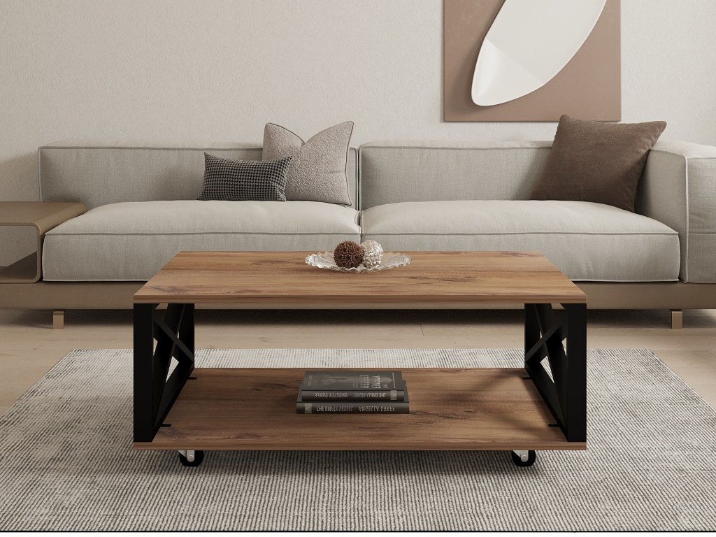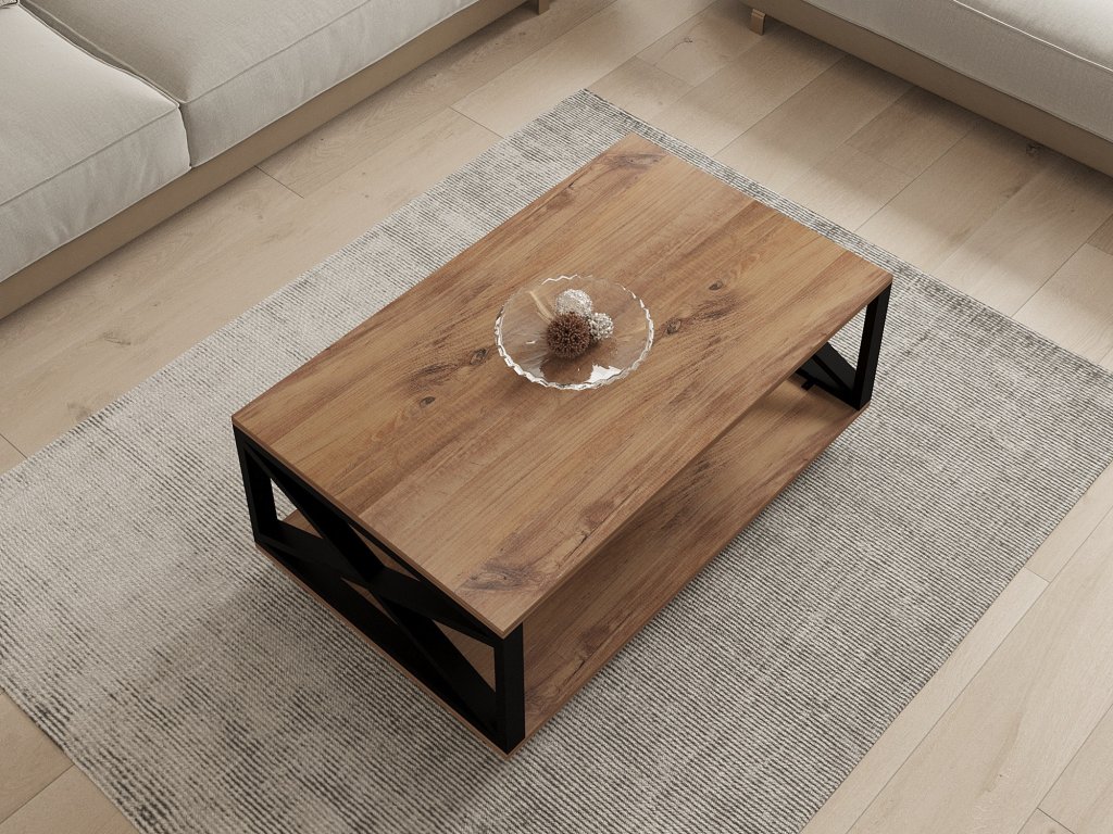 Vychutnejte si koncept industriálního designu s jedinečnou a podmanivou estetikou našeho konferenčního stolku. Barva atlantské borovice dodá každé místnosti rustikální kouzlo a bez námahy se hodí do různých stylů interiéru. Ať už je váš domov zařízen moderní, současný nebo tradiční, tento konferenční stolek je perfektním doplňkem, který váš prostor pozvedne.