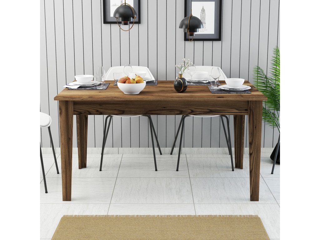 Díky svému elegantnímu a modernímu designu dodává tento jídelní stůl každému prostoru nádech sofistikovanosti. Barva ořechu dodává teplo a eleganci, díky čemuž se perfektně hodí do jakéhokoli stylu interiéru. Díky kompaktním rozměrům 145 cm na šířku, 75 cm na výšku a 88 cm na hloubku je ideální pro malé i velké jídelny.