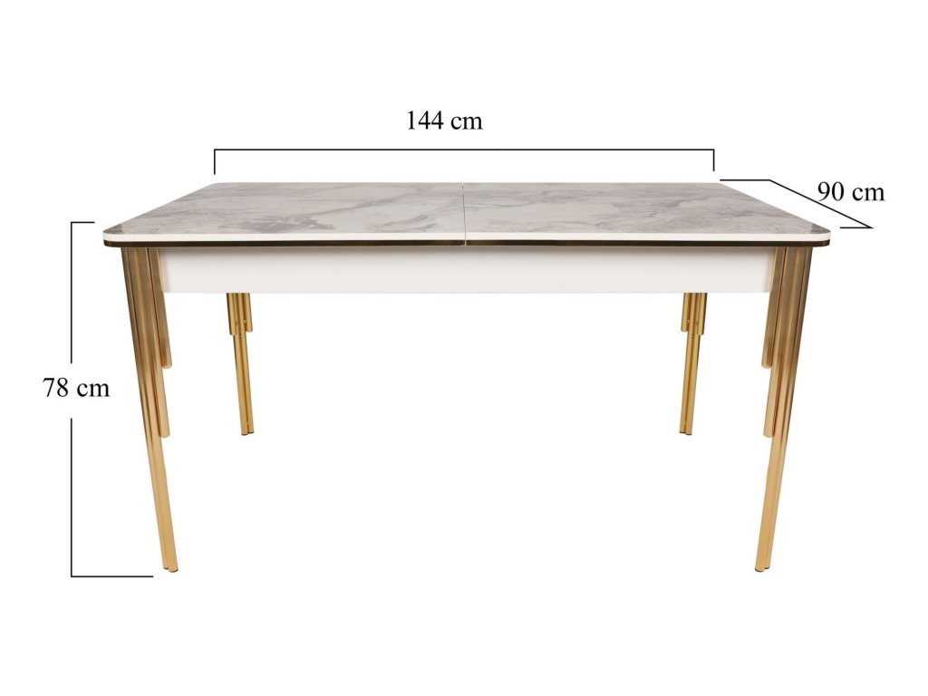 - Rozměry stolu: Šířka: 144 cm, Výška: 78 cm, Hloubka: 90 cm