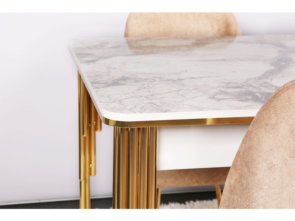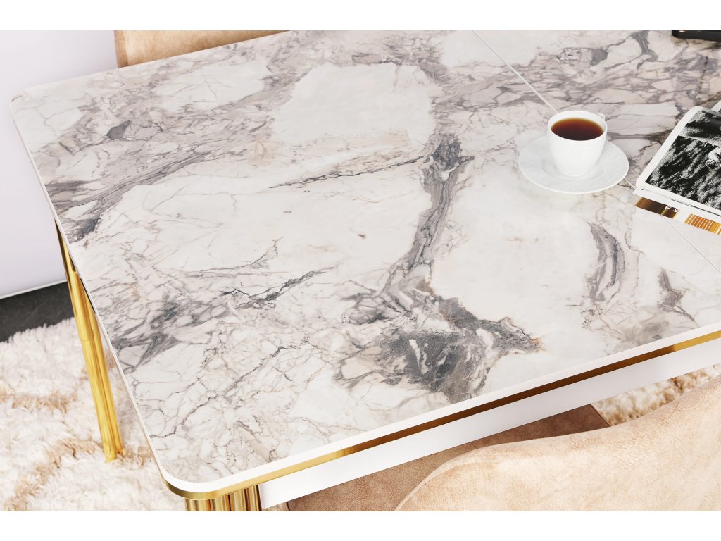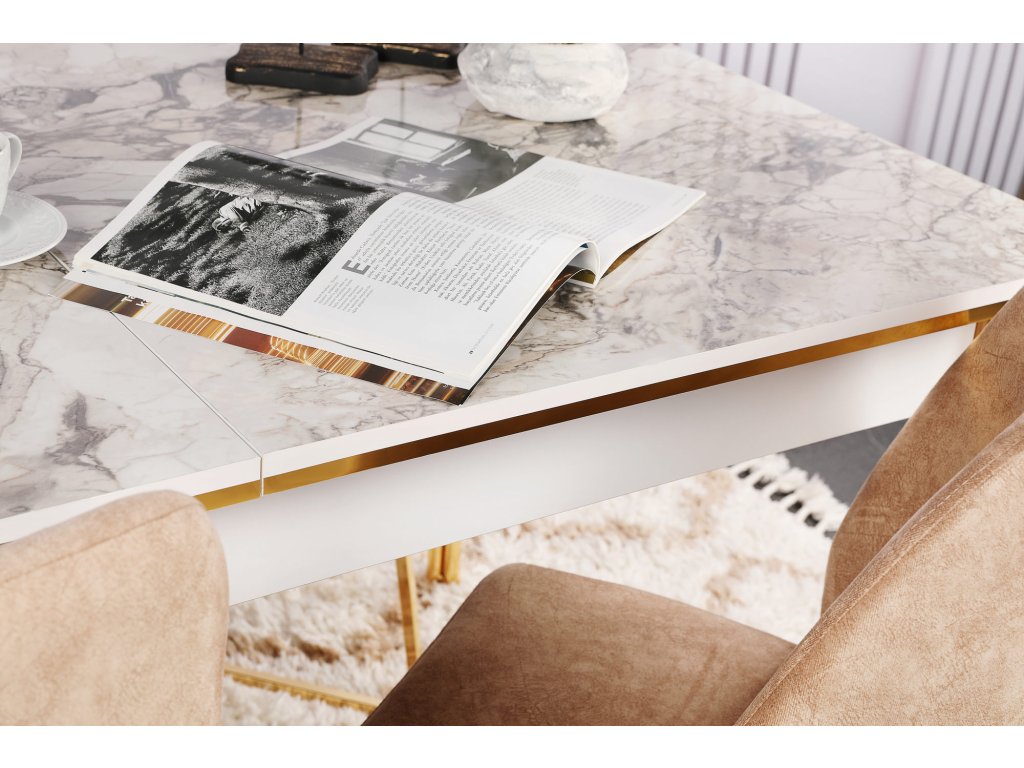 CASE rozkládací jídelní stůl, zlatá / bílá