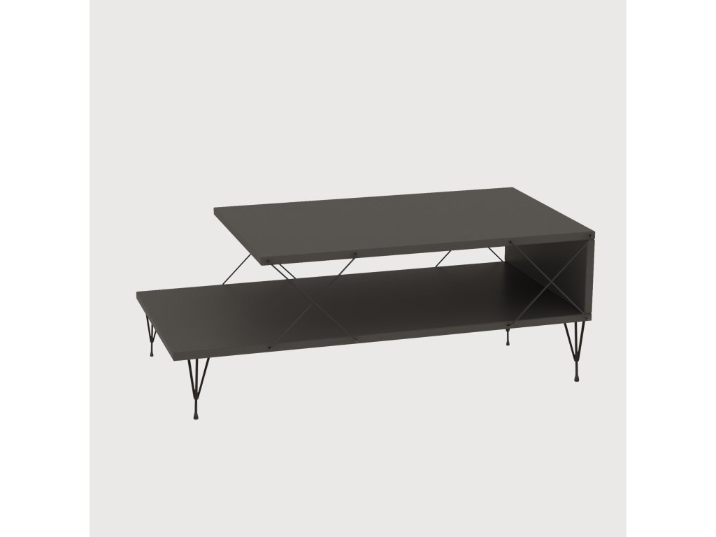 Antracitová barva našeho konferenčního stolku dodá každé místnosti nádech sofistikovanosti. Jeho industriální koncept bez námahy kombinuje rustikální kouzlo s moderním designem a vytváří tak jedinečnou a příjemnou atmosféru. Ať už máte moderní nebo tradiční interiér, tento konferenční stolek se bez problémů začlení do vašeho prostoru a vylepší jeho celkový vzhled a atmosféru.