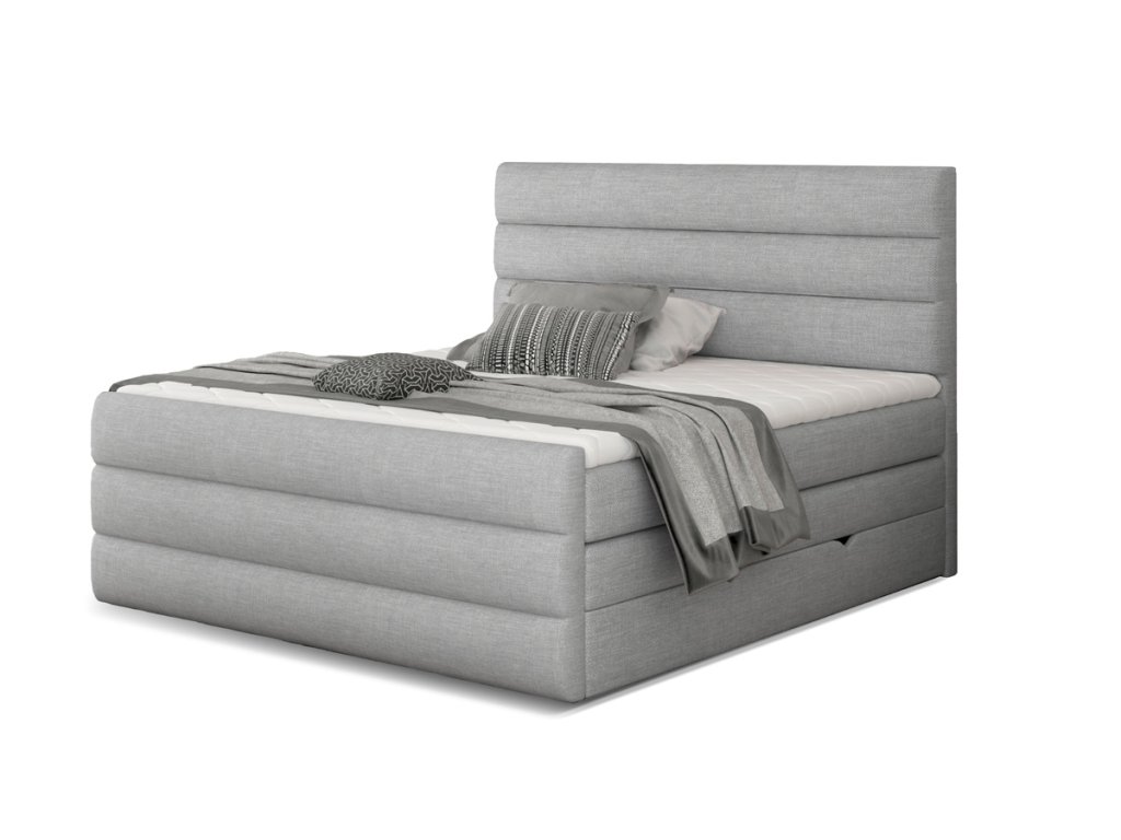 Postel CATARINE patří mezi boxspringové postele v moderním designovém provedení. Dominantním prvkem je horizontální prošití na předním i zadním čele postele, které zvýrazňuje celkový vzhled postele a činí ji výjimečnou. Výška ložné plochy poskytne pohodlné vstávání a sedání na postel.