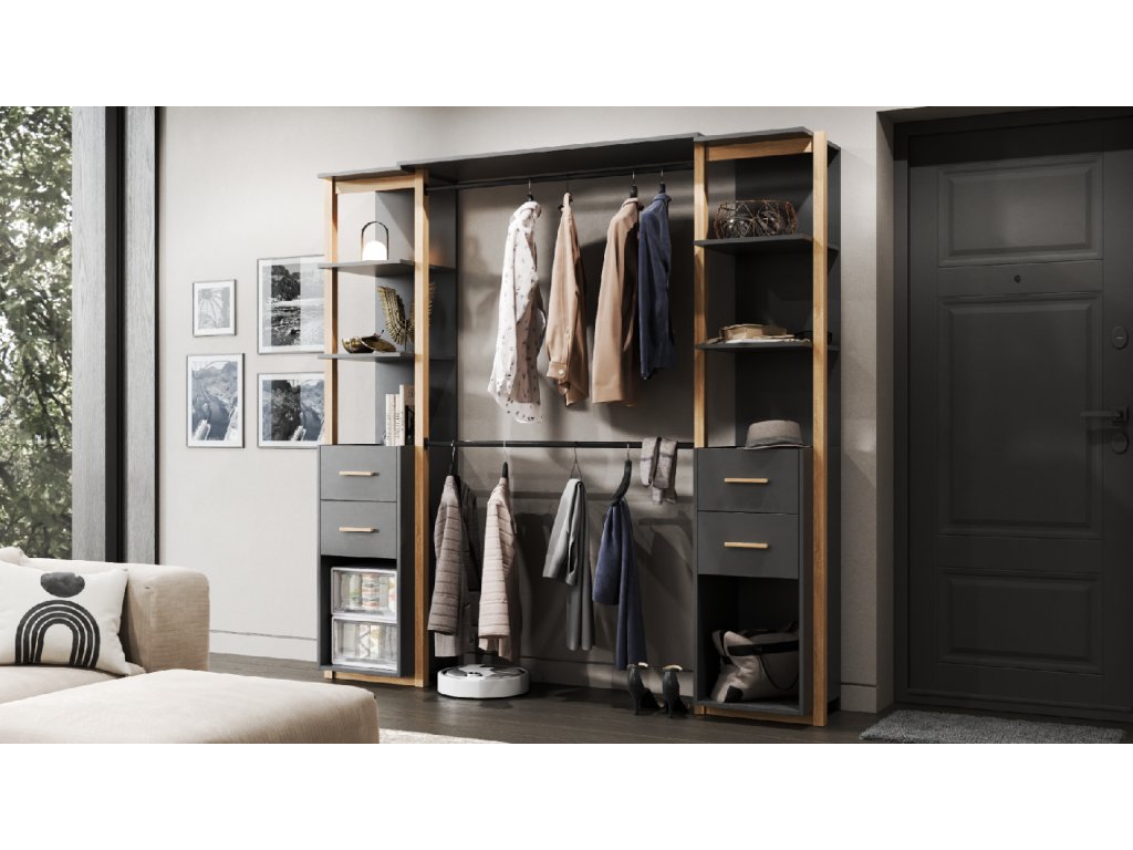 CATERIN 1 otevřený šatník do předsíně, dub Artisan/antracit