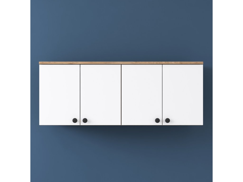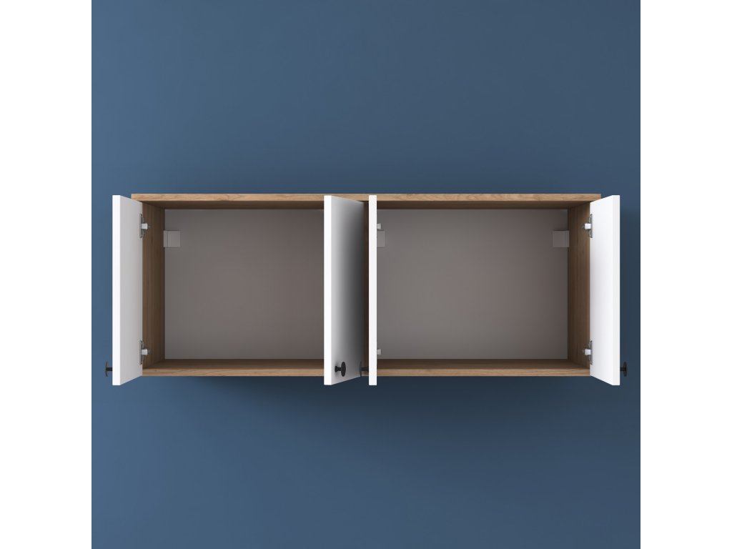 Závěsná skříňka CAVE kombinuje elegantní design a praktické využití. Je ideálním řešením pro organizaci a uložení věcí v obývacím pokoji nebo ložnici. Spojení bílé barvy a dekoru ořechu dodává interiéru styl a útulnost. Skříňka s plnými dvířky zajišťuje diskrétnost a zároveň vytváří čistý a elegantní vzhled.