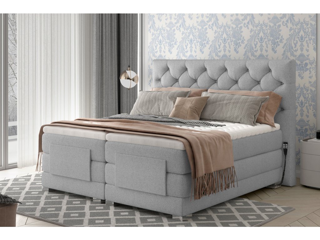 CEDRIK je výjimečná postel v luxusním provedení. Patří mezi vysoké boxspringové postele, které nabízejí snadné vstávání a sedání na postel. Spací plocha 180 x 200 cm je rozdělena na dvě lůžkové části. Elektricky nastavitelný rám s dálkovým ovládáním dává možnost polohování matrace u hlavy iu nohou (viz foto). Každé lůžko má samostatný ovladač a může si nastavit ideální polohu dle vlastních požadavků.