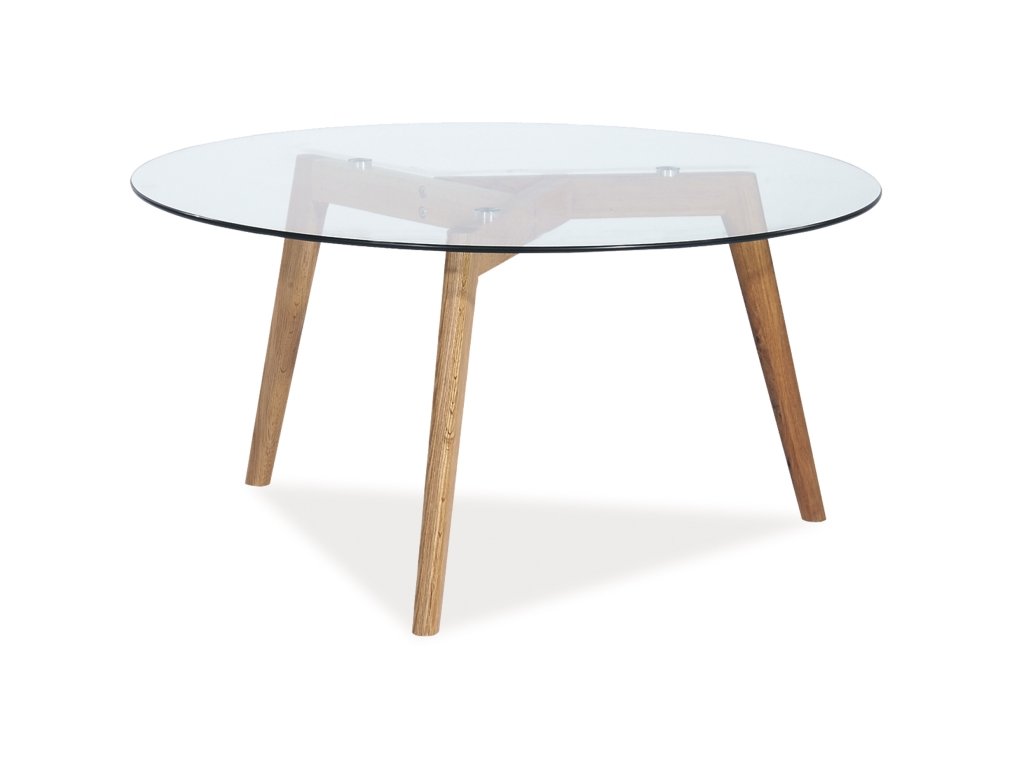 Konferenční stolek je vyroben z tvrzeného transparentního skla. Konstrukce konferenčního stolku je vyrobena z kovu v kombinaci s přírodní dýhou.