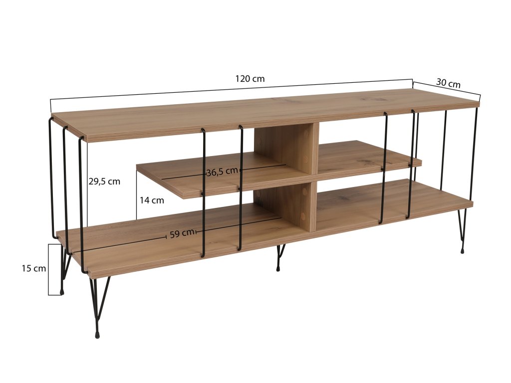 Vylepšete atmosféru svého obývacího pokoje s naším úžasným televizním stolkem. Tento kus nábytku, vyrobený s maximální precizností, je navržen tak, aby vašemu domovu dodal nádech elegance. Jeho moderní a originální koncept v kombinaci s industriálním nádechem z něj činí perfektní doplněk do jakéhokoli moderního interiéru.