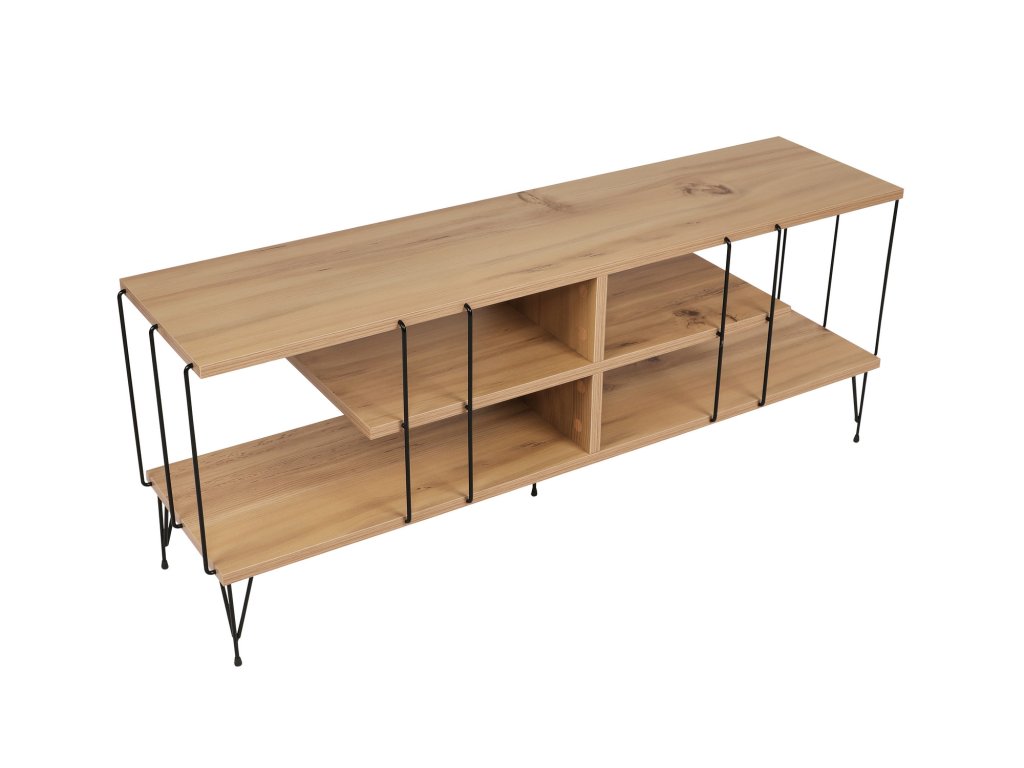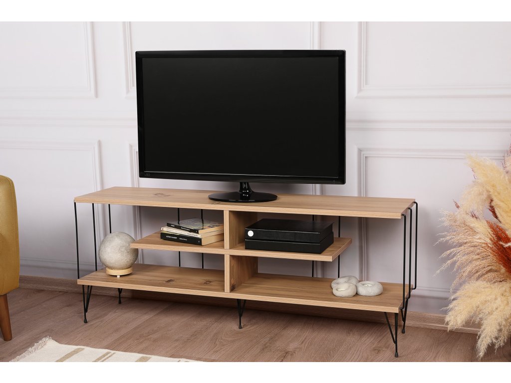 S mnoha policemi nabízí tento televizní stolek spoustu možností úložného prostoru pro vaše mediální zařízení, herní konzole, DVD a další. Udržujte svůj obývací pokoj organizovaný a bez nepořádku a zároveň si na policích vystavte své oblíbené dekorativní předměty.