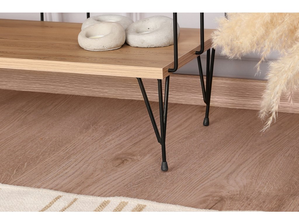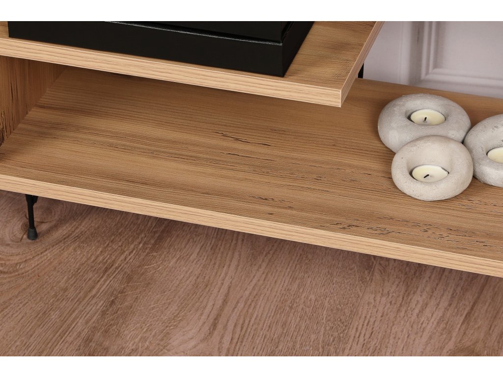 Tento televizní stolek je vyroben ze 100% dřevotřísky s melaminovým povlakem a je navržen tak, aby vydržel. Tloušťka 18 mm zajišťuje robustnost a stabilitu, což vám umožní s jistotou umístit televizi a další elektronická zařízení. Kovové nohy nejen dodávají elegantní a moderní vzhled, ale také poskytují vynikající oporu.