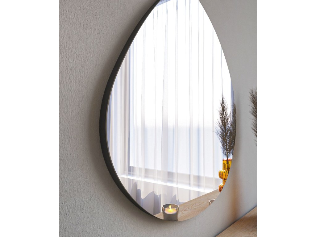 Kombinace kvalitního skla a MDF rámu zajišťuje pevnost, odolnost a dlouhou životnost. Černý rám dodává zrcadlu nadčasový vzhled, který snadno sladíte s ostatními prvky ve vašem domově.