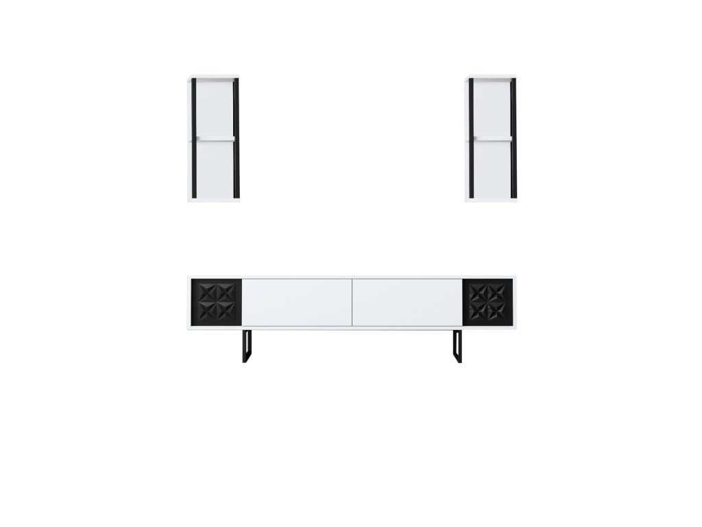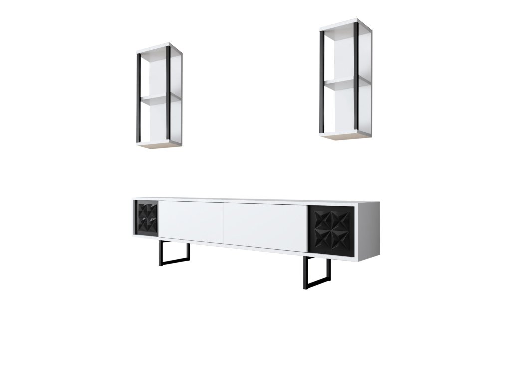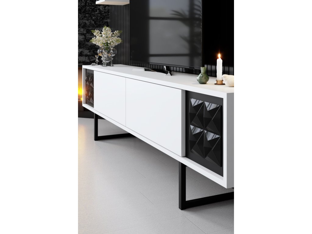 Tento televizní stolek se vyznačuje úžasnou kombinací bílé a černé barvy, která dodá moderní nádech každému obývacímu pokoji. Kontrastní barvy vytvářejí vizuálně atraktivní ústřední bod, díky čemuž je tato skříň stylovým doplňkem vašeho domova.
