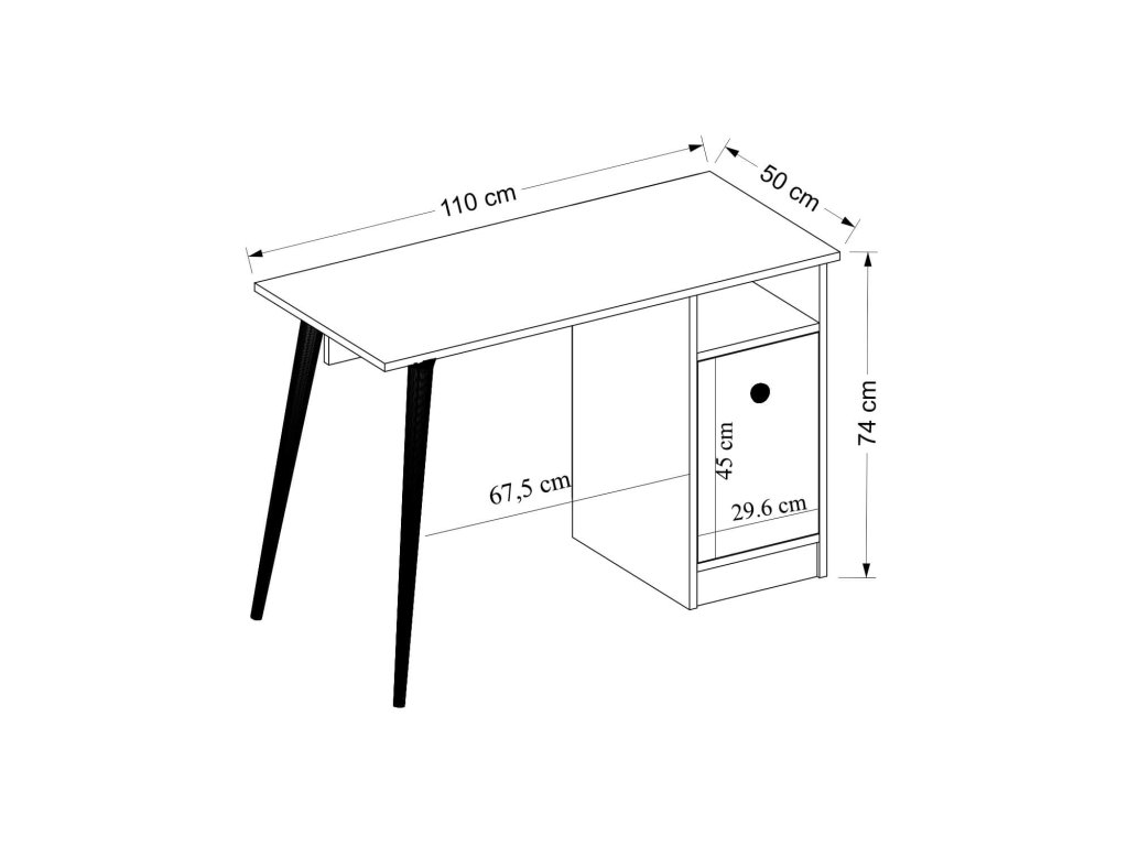 Psací stůl je navržen s ohledem na maximální funkčnost a pohodlí. Jeho kompaktní rozměry 74 x 110 x 50 cm se hodí i do menších prostor, aniž by omezovaly pracovní plochu. Colorado je vybaven praktickou skříňkou a regálkem, což zajišťuje dostatek úložného prostoru pro všechny potřebné věci.