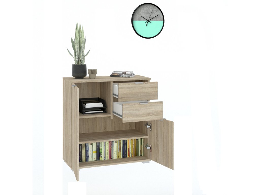 Komoda je vyrobena z kvalitních LTD desek. Jsou nenáročné na údržbu. Komoda je dvoudveřová, disponuje také dvěma praktickými šuplíky.