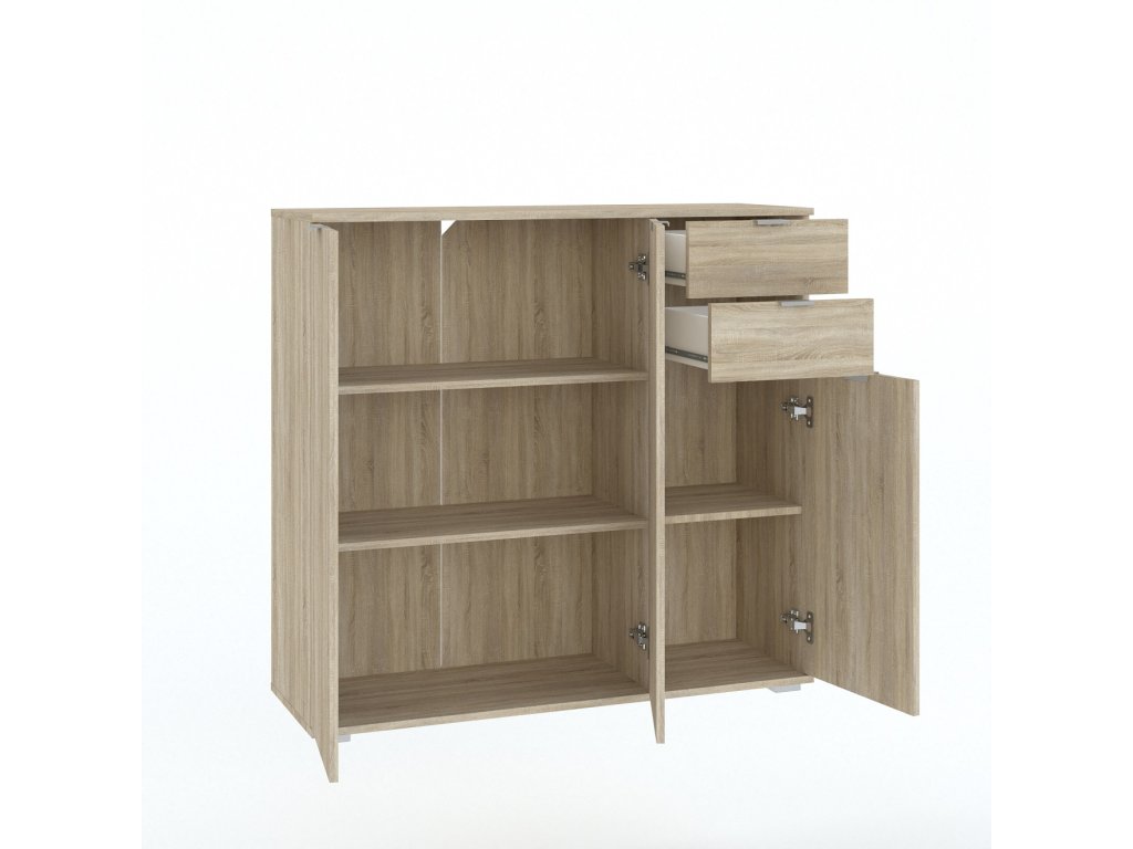 Komoda je vyrobena z kvalitních LTD desek. Jsou nenáročné na údržbu. Komoda je třídveřová, disponuje také dvěma praktickými šuplíky.