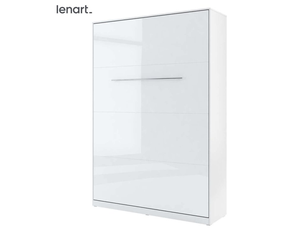 Vysoká výklopná postel 140 bílá lesk/bílá mat. Korpus nábytku je v matné bílé barvě, čelo nábytku je v bílém lesku. Rozměry viz obrázek. Každý kus nábytku v novém provedení Vám umožní dokonale zařídit menší ložnici nebo obývací, dětský či studentský pokoj. Se sklápěcí postelí Vás už nebude trápit malý prostor Vaší domácnosti. Díky stabilní konstrukci zaručuje pohodlný odpočinek. Bezpečnost je velmi důležitá a tak má naše sklápěcí postel mechanismus, kterým zablokujete postel proti samovolnému otevření. Při sklápění postele FUNKCE STOP zajistí bezpečné otevírání i zavírání. Tento výjimečný systém Vám umožní manipulaci pouze jedním prstem. Když je postel sklopená, vypadá jako běžná skříň. Vyklopením se vytáhne celá šířka postele. Při rozložení postele má hloubku 237 cm. Rám je nutno přišroubovat ke zdi, nosnost postele je 200 kg. Rošt postele je v ceně, matrace není součástí, je potřeba ji dokoupit. Doporučujeme velikost 140 x 200 x výšku do 18 cm. Po sklopení postele vzniká prostor pod postelí o výšce 20,4 cm. Nábytek je vyroben z kvalitního lamina s ABS hranou. Lamino je odolné proti poškrábání, poškození, vlhkosti a vysokým teplotám. Postel nabízíme v několika velikostech a barevných provedeních. Dodáváme v demontovaném stavu. Můžete si prohlédnout prezentační video, klikněte ZDE.