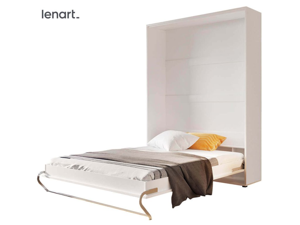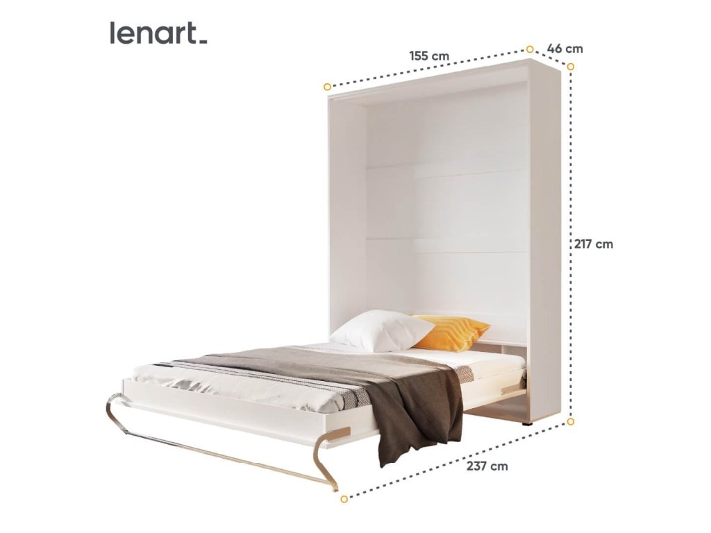 Vysoká výklopná postel 140 bílá mat. Rozměry viz obrázek. Každý kus nábytku v novém provedení Vám umožní dokonale zařídit menší ložnici nebo obývací, dětský či studentský pokoj. Se sklápěcí postelí Vás už nebude trápit malý prostor Vaší domácnosti. Díky stabilní konstrukci zaručuje pohodlný odpočinek. Bezpečnost je velmi důležitá a tak má naše sklápěcí postel mechanismus, kterým zablokujete postel proti samovolnému otevření. Při sklápění postele FUNKCE STOP zajistí bezpečné otevírání i zavírání. Tento výjimečný systém Vám umožní manipulaci pouze jedním prstem. Když je postel sklopená, vypadá jako běžná skříň. Vyklopením se vytáhne celá šířka postele. Při rozložení postele má hloubku 237 cm. Rám je nutno přišroubovat ke zdi, nosnost postele je 200 kg. Rošt postele je v ceně, matrace není součástí, je potřeba ji dokoupit. Doporučujeme velikost 140 x 200 x výšku do 18 cm. Po sklopení postele vzniká prostor pod postelí o výšce 20,4 cm. Nábytek je vyroben z kvalitního lamina s ABS hranou. Lamino je odolné proti poškrábání, poškození, vlhkosti a vysokým teplotám. Postel nabízíme v několika velikostech a barevných provedeních. Dodáváme v demontovaném stavu. Můžete si prohlédnout prezentační video, klikněte ZDE.