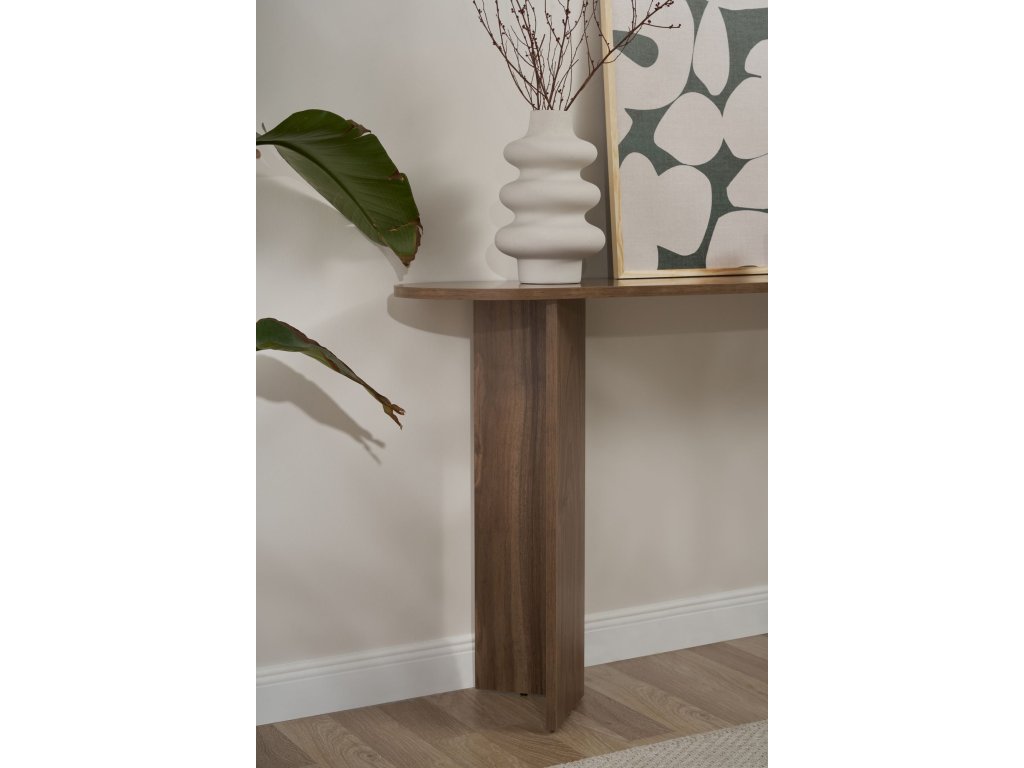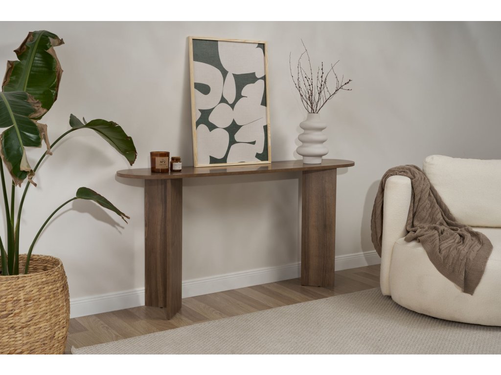 Elegantní design této konzoleu okamžitě pozvedne vzhled každé místnosti ve vašem domě. Sytá ořechová barva dodává vašemu prostoru teplo a hloubku, zatímco čisté linie a moderní silueta mu dodávají moderní nádech.