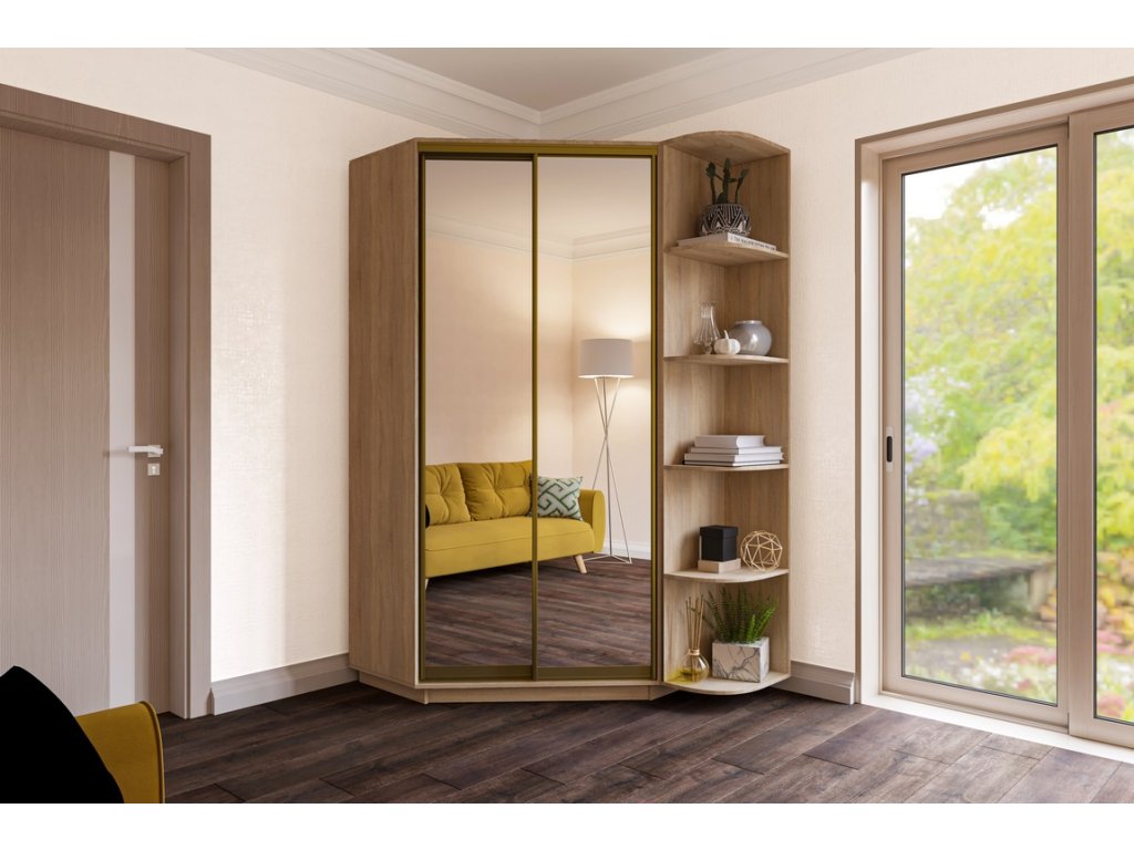 CORZA šatní skříň do rohu se zrcadlem na dvířkách.