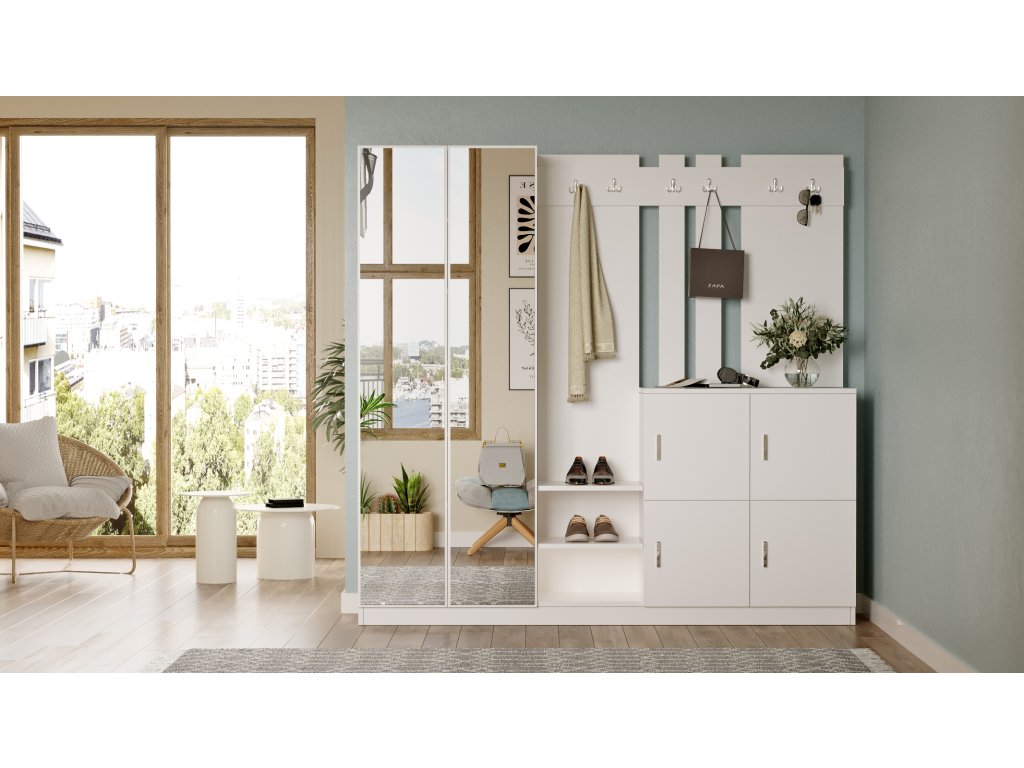 | Sestava obsahuje: | věšáková stěna se skříňkou, policová skříň se zrcadlem |