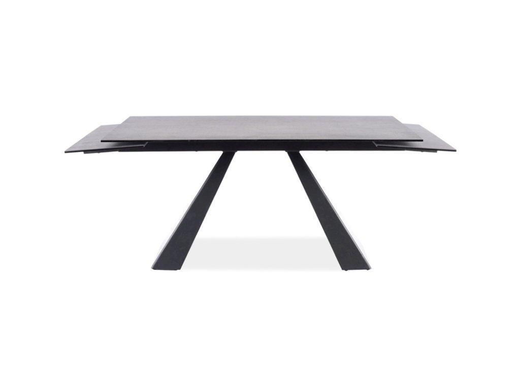 Konstrukce stolu je kovová v černé barvě, vrchní deska je vyrobena z tvrzeného skla a keramiky.