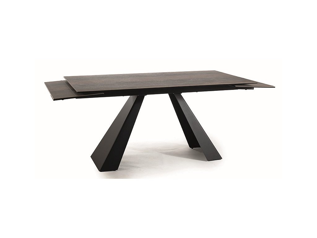 Konstrukce stolu je kovová. Vrchní deska je vyrobena z tvrzeného skla.