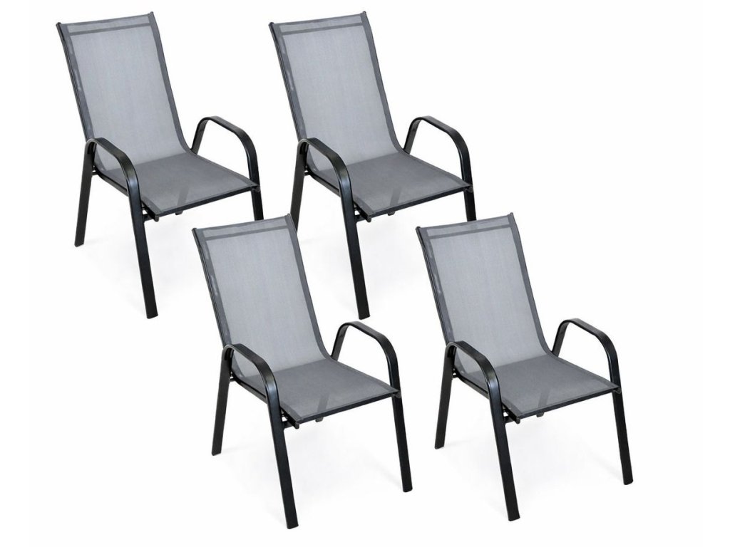 Set 4 ks DAMARA zahradní křeslo, černá/tmavě šedá látka
